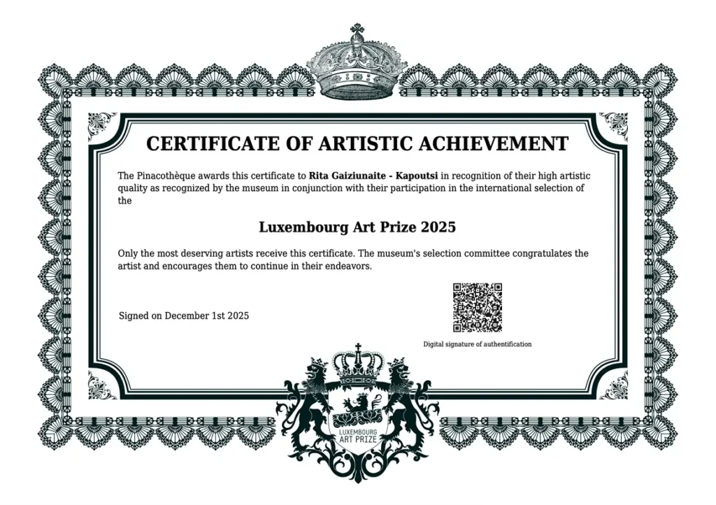 Menininkė pelnė tarptautinį pripažinimą konkurse Luxembourg Art Prize.