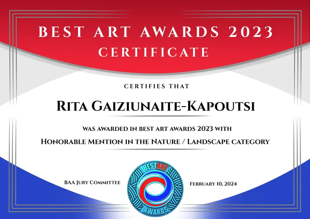 Įvertinta tarptautiniame meno konkurse Best Art Awards.