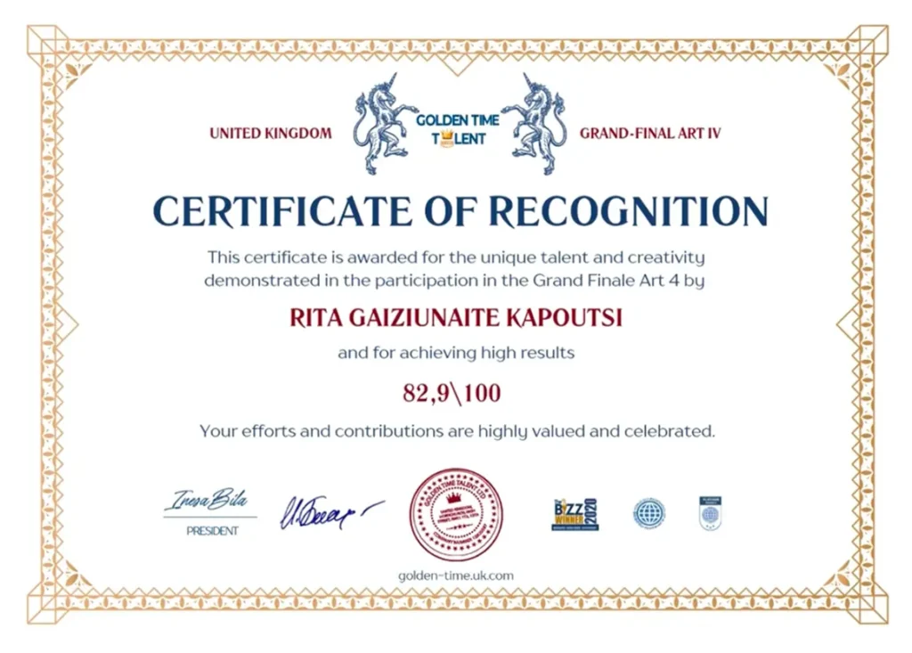 Prizininkė tarptautiniame meno konkurse Golden Time Talent.
